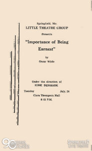 - Ticket for THE IMPORTANCE OF BEING EARNEST, Springfield Little Theatre’s inagural production in 1934.