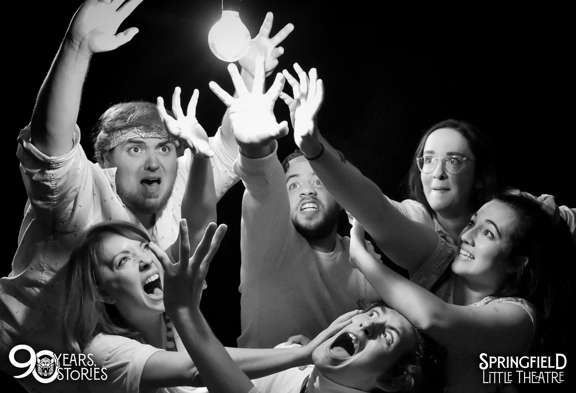 - Annie Crumbaugh (left) and the cast of TOO MUCH LIGHT MAKES THE BABY GO BLIND, presented in the Studio Theatre at The Judith Enyeart Reynolds School of the Performing Arts for Springfield Little Theatre.