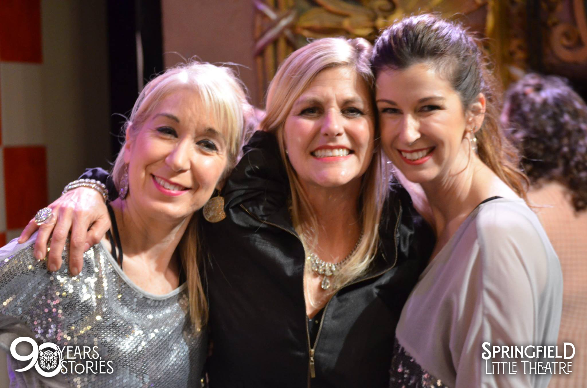 - Education Angels Sally Payne (left), Marty Chaney (center), and Alia Wilson-Lee (right) on stage at The Landers Theatre following a performance in PARENTS GONE WILD, an Education Department fundraiser.