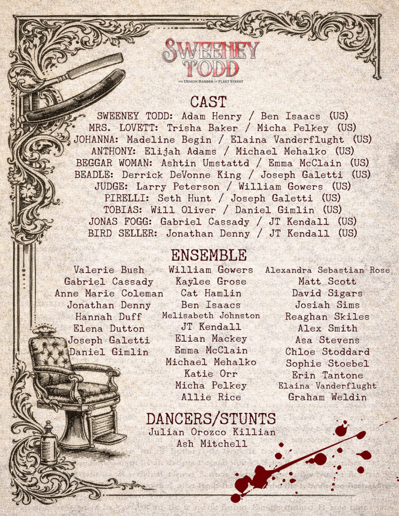 If you are cast, congratulations! We so look forward to setting sail with you. Please search for and request access to join the Facebook group: “SLT’s Anything Goes 2026”. The first cast meeting will be held this coming Monday, April 6 at 7:00 PM at the Judy, 237 South Florence Avenue. Headshots and measurements will be taken beginning at 6:00 PM.