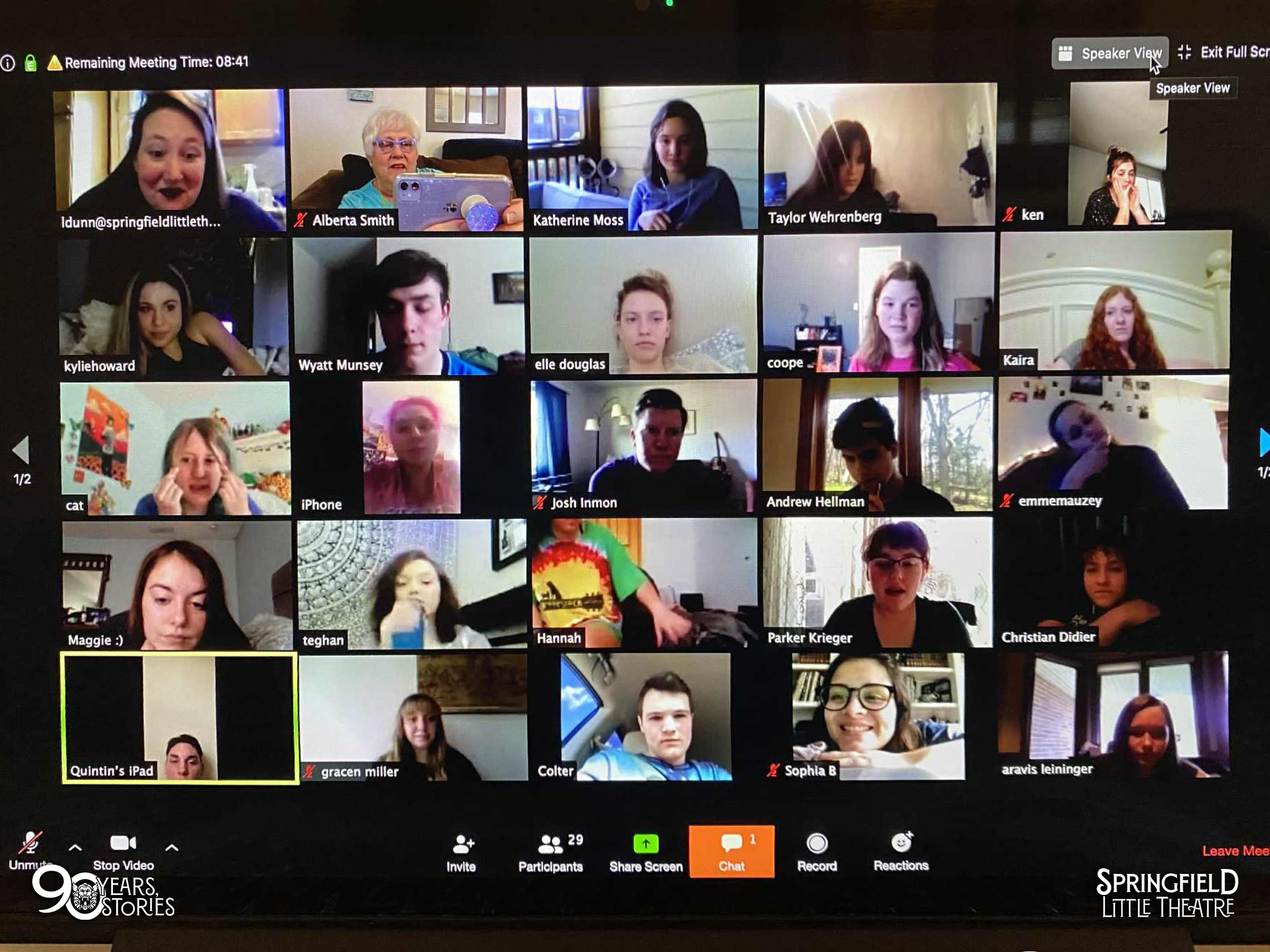- Alberta Smith participating in a COVID era Troupe Zoom meeting.