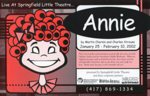 - Promotional postcard from Springfield Little Theatre’s 2002 production of ANNIE.