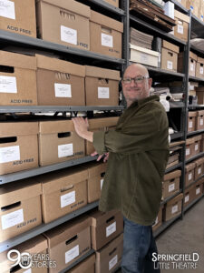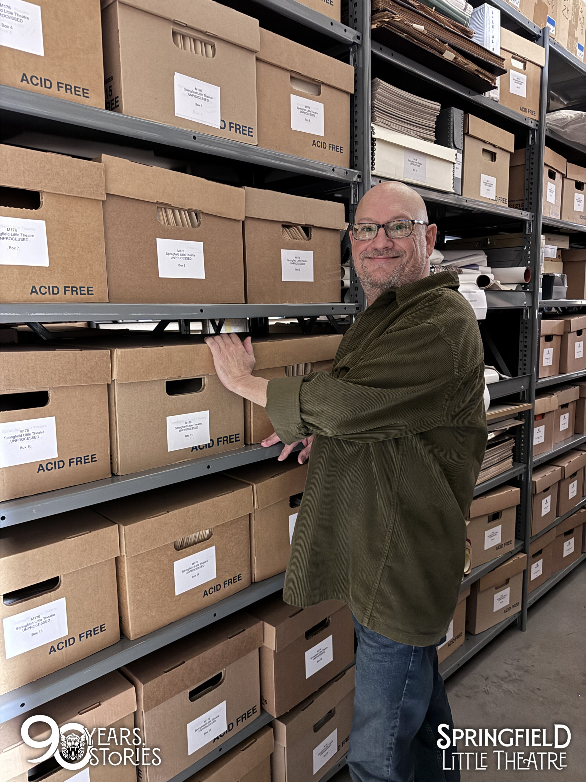 - Jeffrey Lawson in the “stacks” with Springfield Little Theatre’s archives.