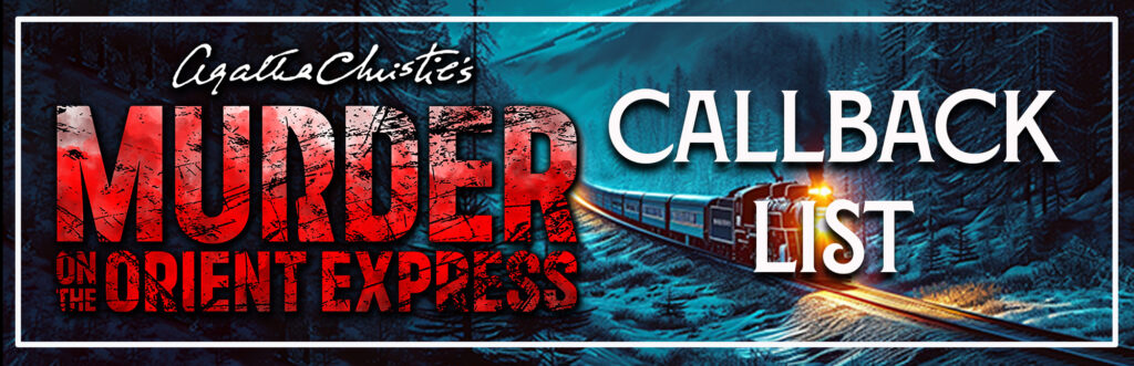 If you are not listed in the names below, let me assure you there were many agonizing choices that had to be made in order to keep our callback process from taking hours upon hours. Regrettably, I simply was not able to call you all back. I encourage you to come back to our other upcoming auditions! Christmas is right around the corner!